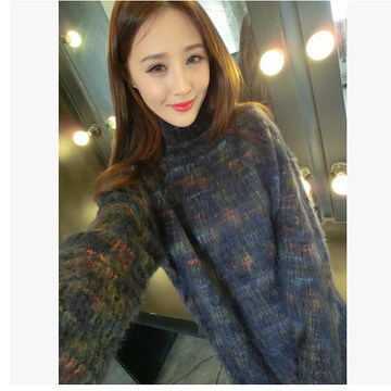 秋冬寬松大碼拉絨中長款套頭高領(lǐng)毛衣裙子女針織打底衫 /