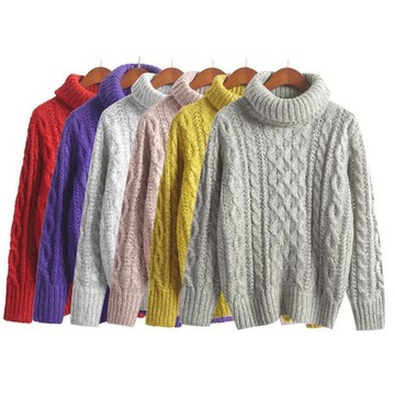 韓版冬季女款 加厚保暖粗線麻花套頭長袖 高領(lǐng)毛衣打底毛衣 /