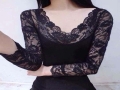 蕾絲袖大V領(lǐng)打底衫 百搭顯瘦加絨加厚保暖內(nèi)衣修身不起球厚薄款 /