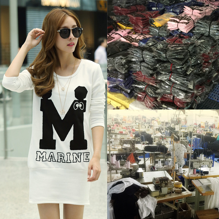 2015新款長裝全棉衛(wèi)衣 抓毛抓絨顯瘦字母頭帽連衣裙 長款衛(wèi)衣長裙 /