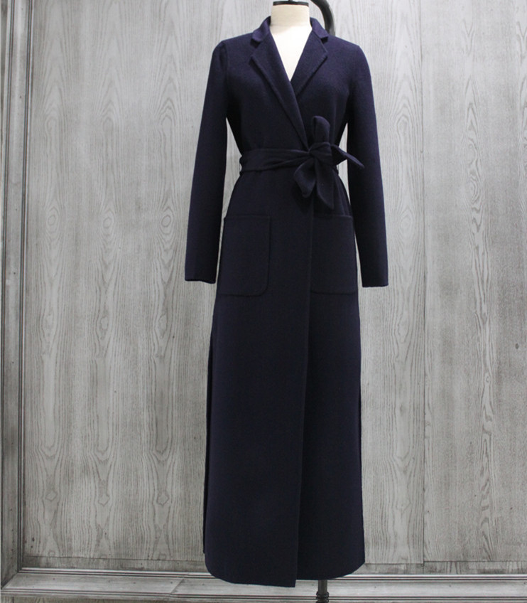 超長款開叉 西裝領大牌歐美雙面羊絨大衣外套收腰系帶MAX同款 /