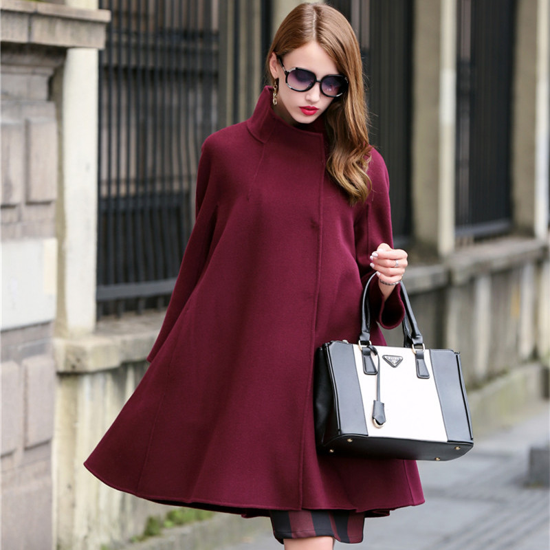 2015秋冬新款歐美大牌手工雙面羊絨大衣女高端斗篷裝歐洲站加厚 /