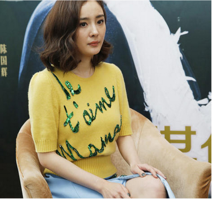 2015秋冬新款黃色七分袖短針織T恤重工綠色亮片管珠字母裝飾 /