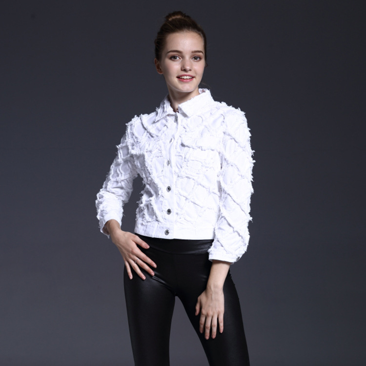 歐美春季新款牛仔短款外套 翻領單排扣牛仔衣外套女批發(fā)品牌女裝 /