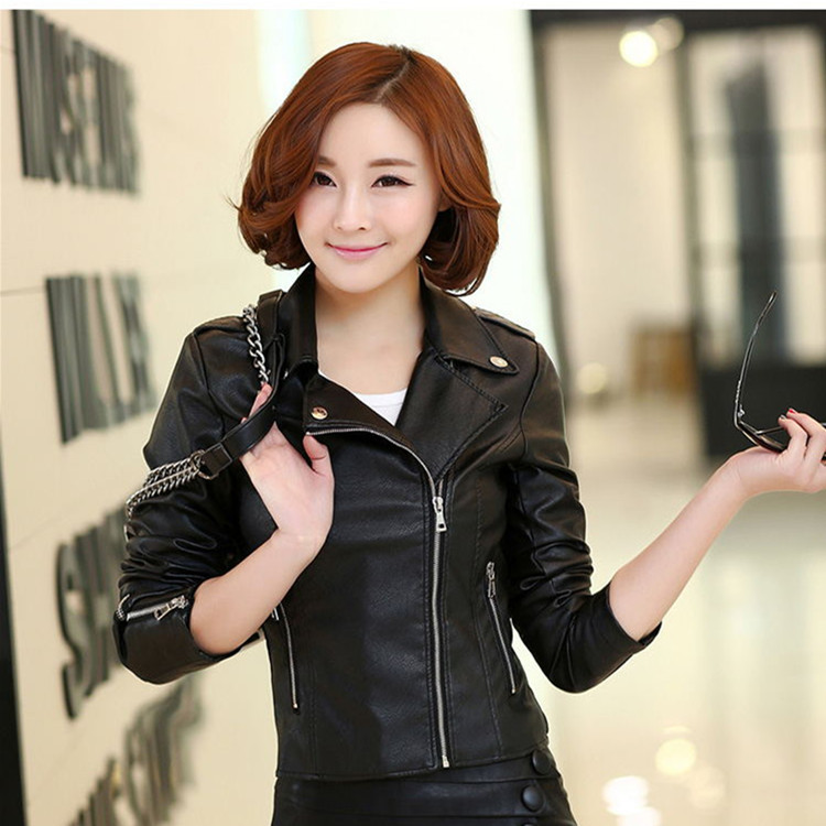 2015春秋新款機(jī)車皮衣女短款立領(lǐng)修身大碼皮夾克PU皮外套歐美潮 /