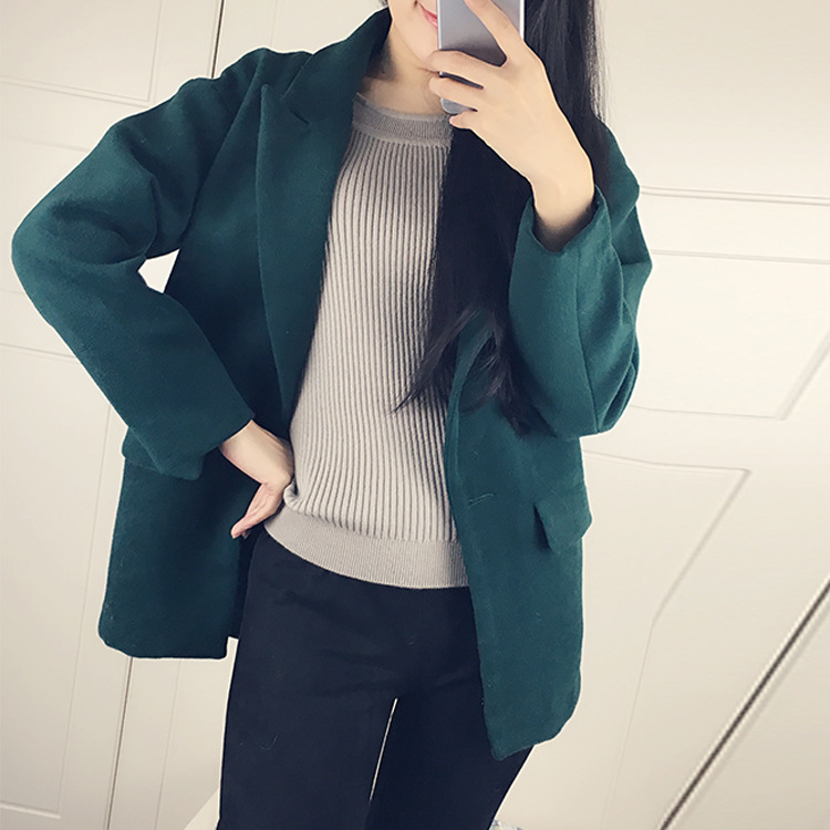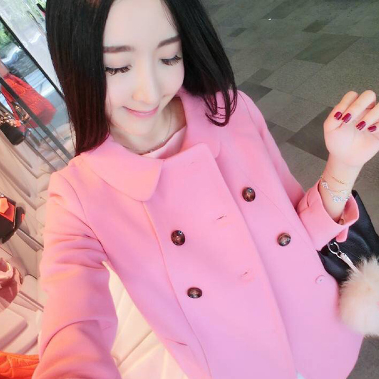 韓國東大門品牌女裝單排扣氣質(zhì)毛呢外套秋冬時尚女上衣外套保暖潮 /