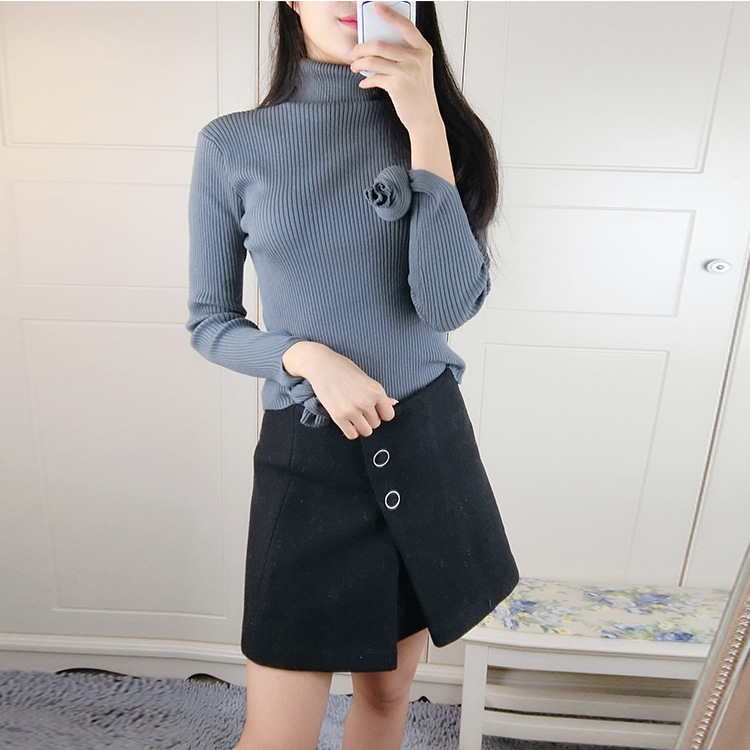 女裝冬季新品時尚保暖長袖高領(lǐng)羊毛衣修身顯瘦短款套頭針織衫批發(fā) /