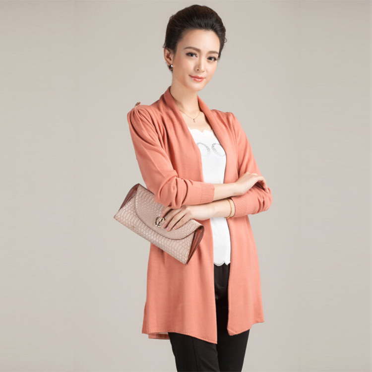 2015春季新款女式羊毛衫 帶口袋開衫長(zhǎng)款純色外披網(wǎng)紗女式毛衣 /