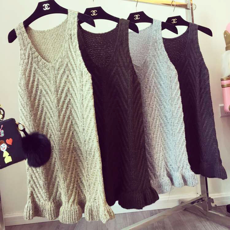 2015秋冬新款雜線毛線馬甲 韓版無袖長款毛衣背心 /