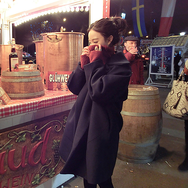 2015秋冬季新款加厚毛呢外套韓版寬松繭型羊毛呢子大衣中長款女潮 /