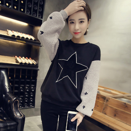 2015冬裝新款韓版星星拼接套頭圓領(lǐng)長袖寬松百搭衛(wèi)衣女 /