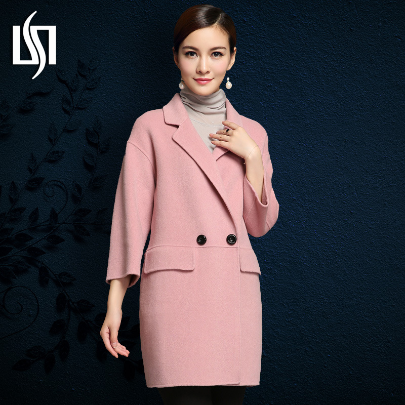 羊絨大衣女2015秋冬新品糖果色雙面毛呢外套中長(zhǎng)款雙排扣女裝8002 /
