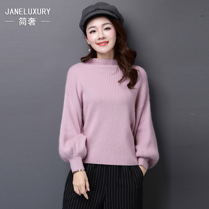 2015秋冬女裝 歐美半高領燈籠長袖套頭毛衣 時尚純色針織打底衫 /