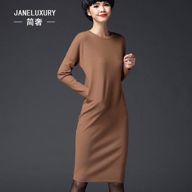 2015秋冬新款韓版寬松連衣裙 純色套頭長款針織衫女式 打底衫 /