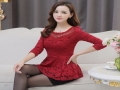 韓版顯瘦秋冬新款女裝鏤空加絨加厚大碼長袖蕾絲打底衫女 /