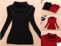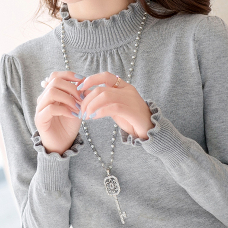 荷葉邊新款純色百搭木耳領(lǐng)仿羊絨打底衫修身毛衣針織女廠家批發(fā) /