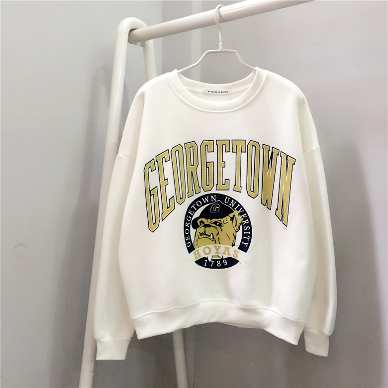 秋季新款學(xué)院女式衛(wèi)衣大碼韓版寬松休閑百搭圓領(lǐng)印花長袖打底套衫 /