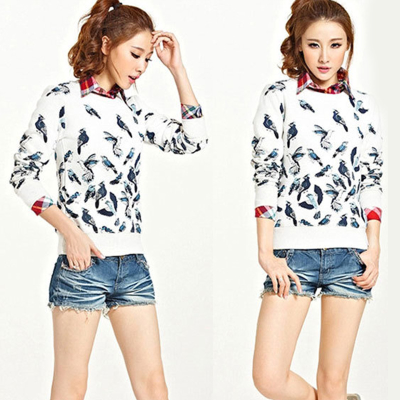 清新文藝基本款 春款 新款套頭圓領(lǐng)抓絨衛(wèi)衣絨衫 象征吉祥的小鳥 /