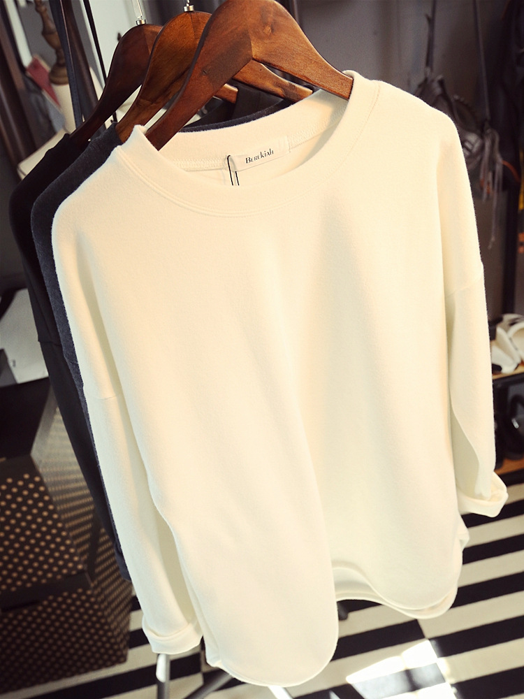 7112#2015 看著簡(jiǎn)單穿上有范!很厚實(shí)磨毛棉開(kāi)叉打底衫T恤長(zhǎng)袖t恤 /
