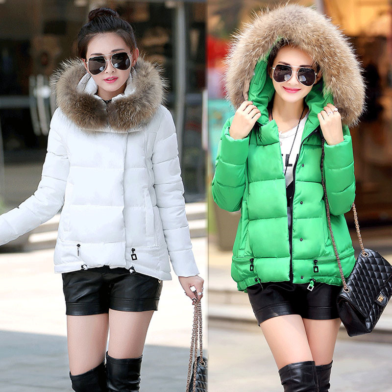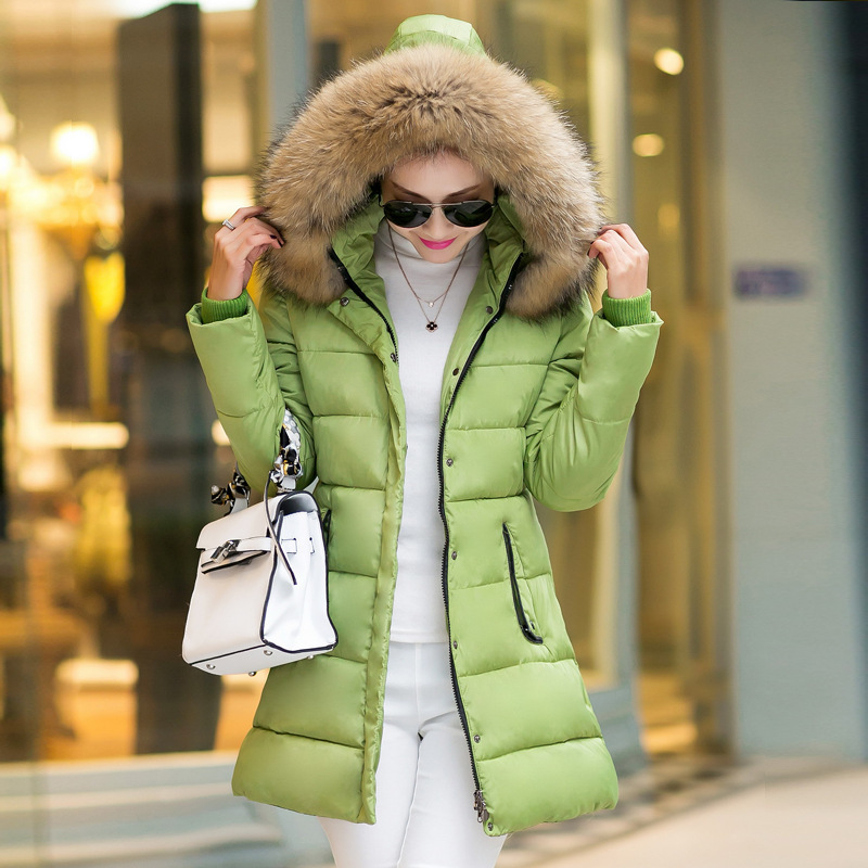 批發(fā)2015秋冬新款韓版女裝時尚修身中長款大毛領(lǐng)連帽羽絨棉服棉衣 /