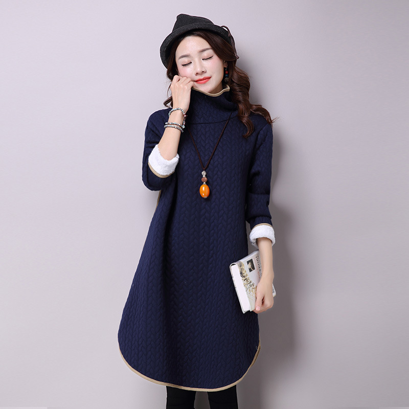 2015冬季新款民族風(fēng)加厚加絨保暖麻棉圓領(lǐng)中長(zhǎng)款棉麻連衣裙 /