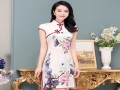 2016夏季女裝短袖民族風(fēng)印花桑蠶絲重磅真絲修身優(yōu)雅旗袍中裙 /