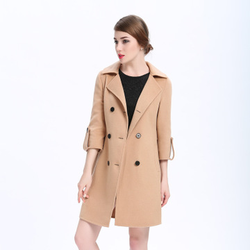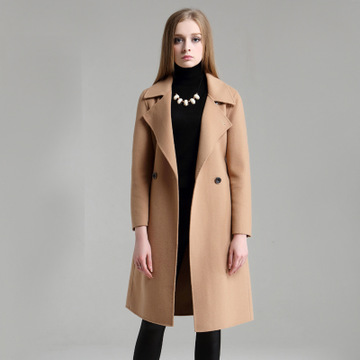 2016秋冬新款女式中長款寬松 純手工雙面羊絨呢子大衣 廠家直銷 /