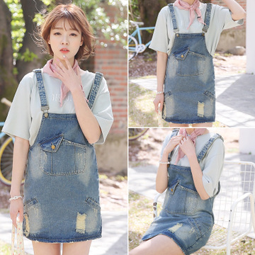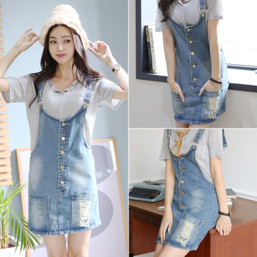 2016春夏新款韓版牛仔背帶短裙女學生磨破寬松百搭連衣裙潮 /