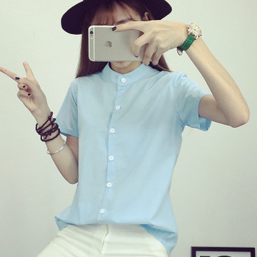 2016夏季新款韓版休閑小立領(lǐng)襯衫短袖學(xué)生女棉麻襯衣潮 /
