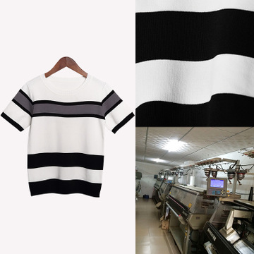 淘工廠—2016春上新女裝短袖套頭條紋毛衣針織衫 東莞大朗毛織廠 /