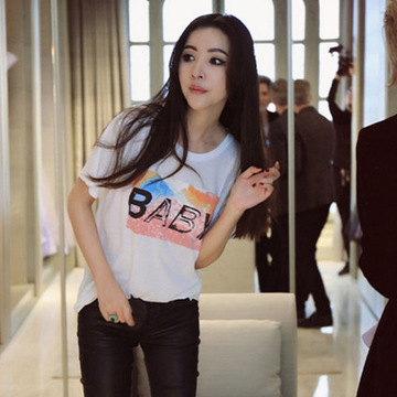 2016新款歐美夏裝潮牌baby字母權志龍情侶裝男女圓領純棉短袖t恤 /