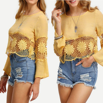 速賣通ebay爆款歐美復(fù)古蕾絲花邊鏤空罩衫喇叭袖防曬衣 薄 /