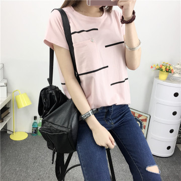 2016夏季新款韓版純棉圓領(lǐng)口袋裝飾寬松短袖T恤女上衣一件代發(fā) /