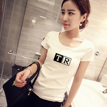 2016夏裝韓版大碼女裝修身顯瘦字母印花短袖純棉女士T恤上衣 /