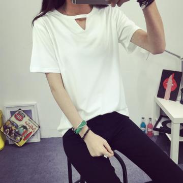 2016夏季新款韓版女裝寬松大碼純色鏤空短袖T恤女上衣一件代發(fā) /