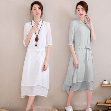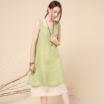 2016夏季新發(fā)韓版精品女裝 無掛件 時尚純色假兩件連衣裙一件代發(fā) /