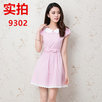 2016夏裝新款小清新娃娃領條紋連衣裙女裝學生半袖夏季可愛裙子潮 /