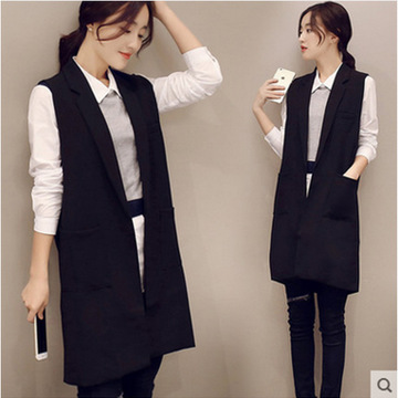 2016春裝新款韓版無袖顯瘦西裝外套中長款馬甲女 /