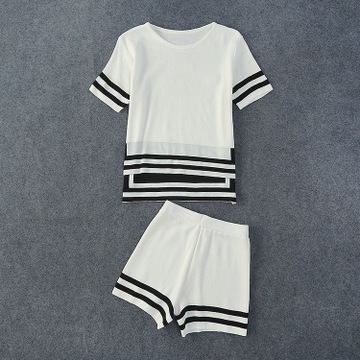阿里巴巴批發(fā)2016春裝新款明星款女裝條紋撞色休閑針織褲套裝 /