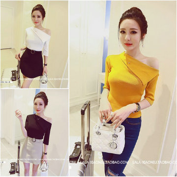阿里巴巴批發(fā)網(wǎng) 2016新品女裝t恤 韓版別致斜肩針織衫一件代發(fā) /