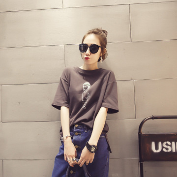 2016夏裝新款韓版卡通人物印花下擺開叉短袖T恤女廠家批發(fā) /