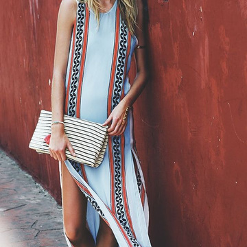 無袖定位印花開叉長裙 波西米亞風(fēng) /