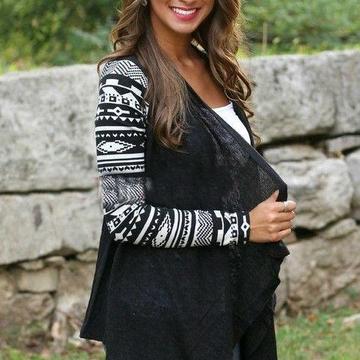 2015秋冬爆款時(shí)尚幾何印花拼接針織開衫女 /