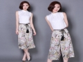 2016夏新款韓版女套裝氣質(zhì)棉麻上衣+雪紡印花闊腿褲 /