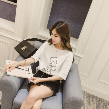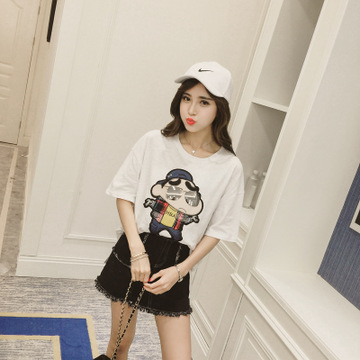 2016夏款韓版蠟筆小新貼布寬松短袖大碼T恤女潮 /