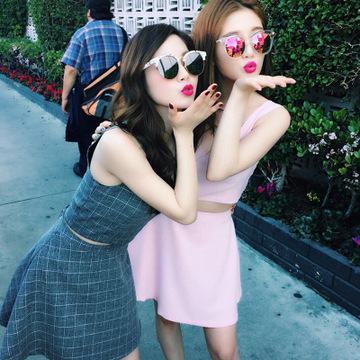 韓國新款甜美夏季閨蜜裝露臍裝短款無袖背心半身短裙時尚套裝 /