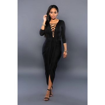M253 現(xiàn)貨銷售 2016歐美速賣通爆款 性感緊身V領(lǐng)不規(guī)則連衣裙 /
