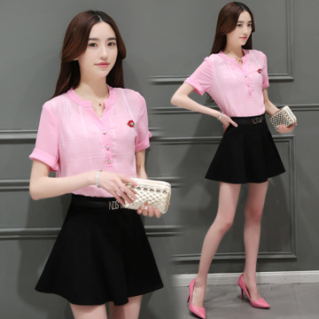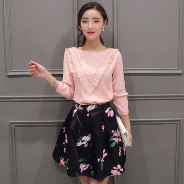 2016夏季韓版雪紡衫套裝裙女時(shí)尚A字裙兩件套連衣裙 /