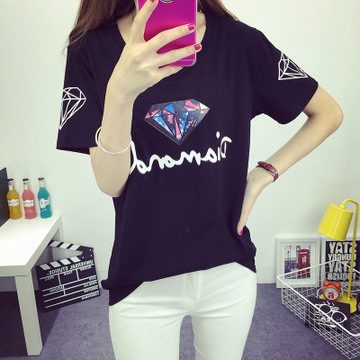 2016新款韓版簡(jiǎn)約鉆石短袖T恤女學(xué)生顯瘦寬松打底衫休閑女T /