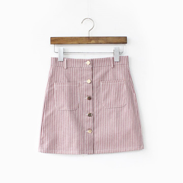 2016韓版新款百搭A字裙條紋前排扣包臀裙短裙高腰顯瘦半身裙 /